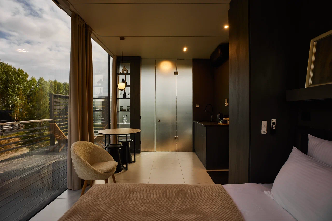 Дома №201 и 302 оснащены душем с панорамным видом, кроватью с ортопедическим матрасом, кухонной зоной и проектором для фильмов.