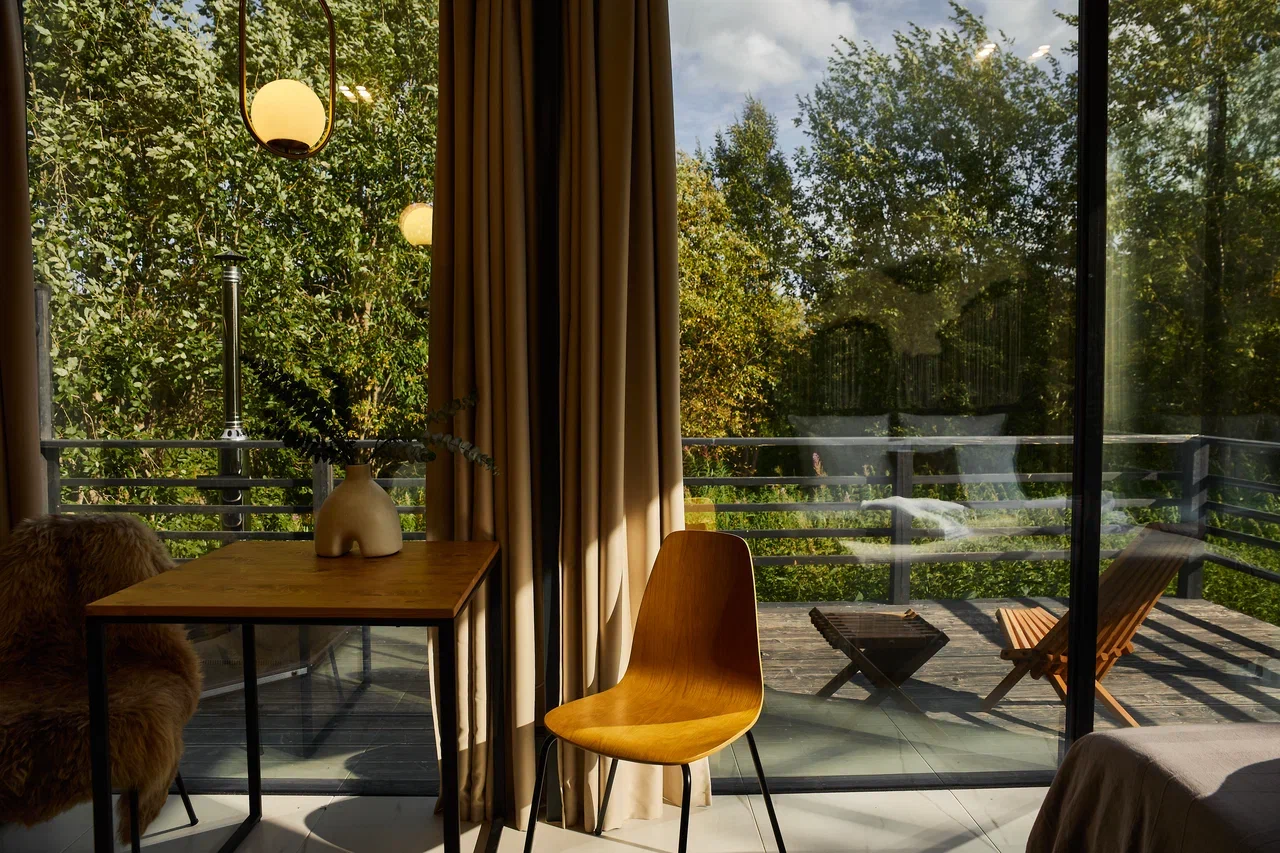 - Из окон открывается панорамный вид на лес, создавая атмосферу спокойствия и гармонии с природой.