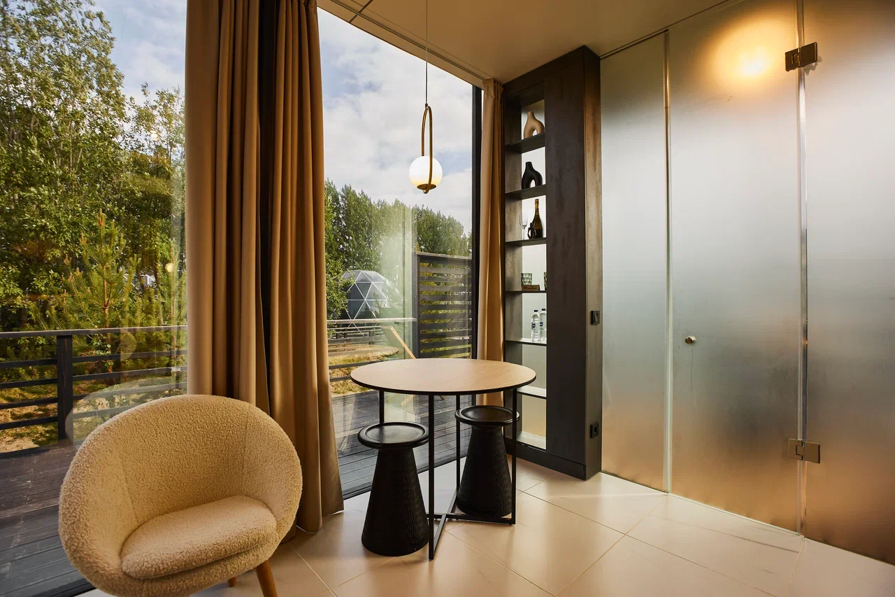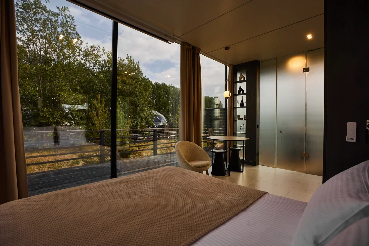 Дома №201 и 302 оснащены душем с панорамным видом, кроватью с ортопедическим матрасом, кухонной зоной и проектором для фильмов.